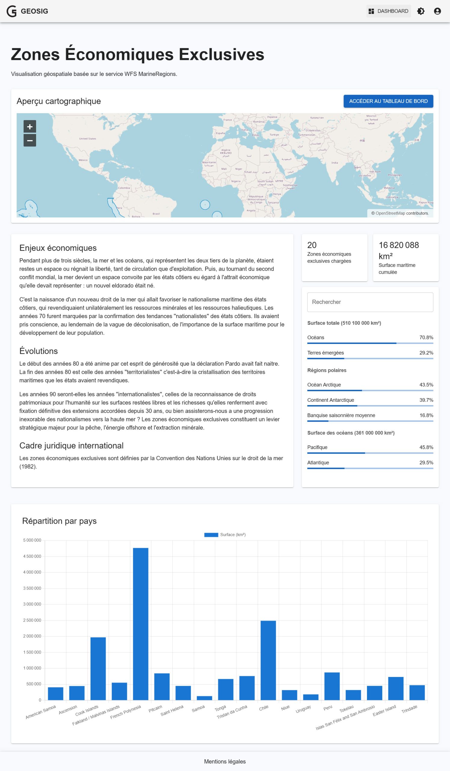 React, TypeScript, MUI, OpenLayers, Chart.js, Axios, Turf.js, React Router, GeoServer WFS (backend externe), OpenStreetMap (tiles)